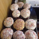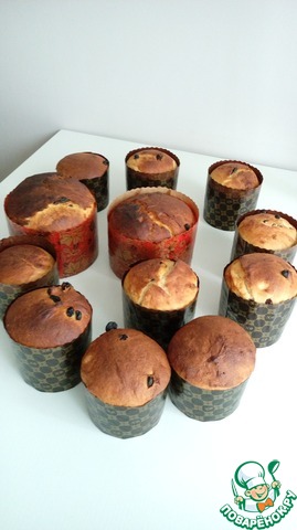 [+5]По количеству, готовили примерно в два раза меньшее количествл продуктов. Но у нас получилось 5 средних и 12 маленьких куличиков! Замешивали тесто в 3х! ёмкостях.