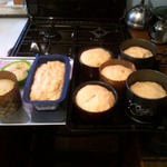 Готовность проверяем зубочисткой. Если верх начинает подгорать, а середина сырая, накрыть формы листом пергамента. -