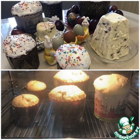 [+5]Очень ароматный , запах именно пасхальной сдобы! Но верхушки стали быстро румяниться, боялась что подгорят, накрывала пергаментом.