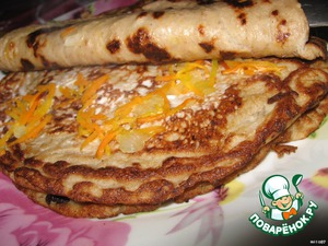 Очень легкий... невероятно нежный... ну очень вкусный закусочный блинный тортик из очень необычных овсяно-гречнево-мясных блинчиков с прослойкой из сливочного сыра и овощей... В ИСПОЛНЕНИИ МОЕЙ МАМОЧКИ... так просто побаловать себя любимую таким наинежнейшим чудом. Вполне можно кушать хоть каждый день... а проявив немного фантазии в украшательстве и на праздничный стол поставить очень не дурно... ну а меня будет согревать мысль о том, что на утро остался еще кусочек:-)!!!