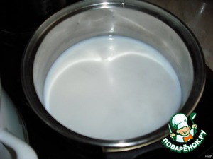 Разводим 1ст.л. крахмала в 3-х ст.л. молока.
