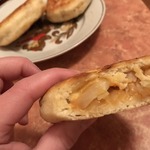 Тесто разделить на небольшие части. Каждый шарик раскатать и в серединку положить начинку.