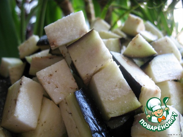 Баклажаны вымыть, нарезать крупными кубиками, посолить и оставить на 30 минут.