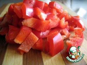 Сладкий перец вымыть, удалить семена и нарезать кусочками.