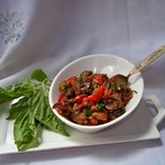 Я очень люблю баклажаны! А уж баклажаны с овощами и орешками в медовом соусе – мечта….. , и вкус у них одновременно кисло-сладкий и сладко-соленый (адаптировано из книги Sicilian Cookery). Для Постимся с "Moulinex"