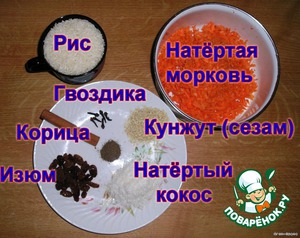 Все остальные ингредиенты широко известны и, полагаю, вам всем хорошо знакомы - это рис, изюм, морковь и натёртый кокос.