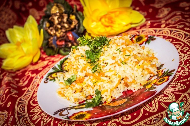 - Рис (сорт "Басмати" или любой длиннозёрный белый рис) — 1 стак.