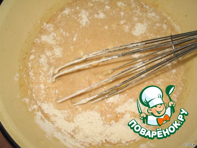 Начинаем вводить муку. Постепенно, аккуратно все перемешиваем.