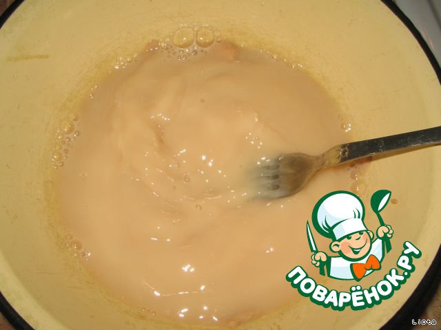 Заливаем их 1 стак. тепленькой водички и растворяем. Добавляем соль, сахар, уксус, масло, паприку и все тщательно перемешиваем.