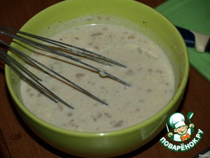 Делаем соус: молоко смешиваем с ложкой майонеза и специями, добавляем туда порезанный зубчик чеснока и поджаренную (на сухой сковороде, как для жюльена) муку (когда мне лень поджаривать - кладу обычную.) Перемешиваем.