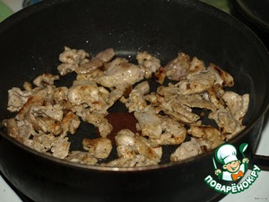 Обжариваем мясо до легкой золотистой корочки (до полуготовности).