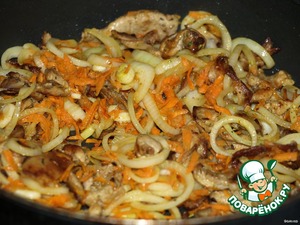 Отдельно подрумяниваем порезанные шампиньоны.