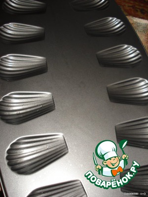 Выложить тесто в формочку для мадленок и выпекать 8 -10 минут при 180 С.