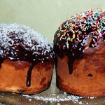 Выпекаем в горячей духовке... Первые 10 минут температура почти на максимуме, затем огонь убавляем почти до минимума и печем до румяной шапочки. Украшаем... Вот такие красотули у меня получились... Не хватает одной... Не уберегла... Мои "гаврики" стащили... Говорят, что нет терпения... Такие ароматы по квартире, как тут устоишь?!