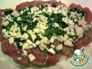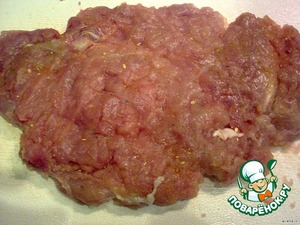 Индюшиное филе разложить в пласт и отбить. Посолить и поперчить по вкусу
