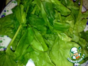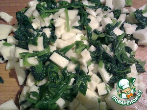 Нарезать остывший шпинат и моцареллу (я решила сделать помельче), смешать