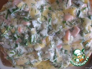 С утра я решила, как говорится, "почистить холодильник". Собрав остатки некоторых продуктов в малых количествах соединила их в этом блюде. Получился очень вкусный и сытный завтрак.