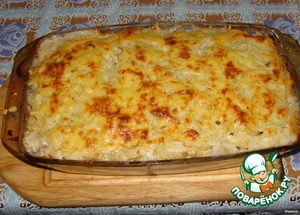 Сверху сново слой тертой картошечки, чуть майонеза и сыром посыпать; и в духовку на 40-50 мин..
