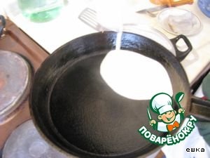 Замешиваем тесто для блинов. Яйца взбить с сахаром, солью, затем добавить растительное масло, соду погасить в уксусе и тоже добавить к яйцам, вылить половину молока.