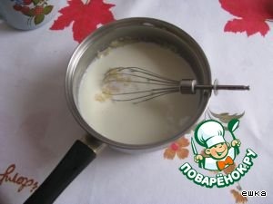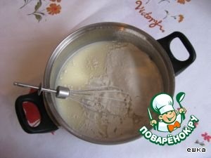 Всыпаем частями муку и замешиваем тесто, чтобы не было комочков, затем выливаем остальное молоко, еще раз перемешиваем