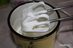• Взбить сливки до пиков и ввести в творожно-масляную смесь,