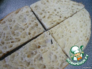 Лепёшку разрезаем по толщине на 2 половинки. -