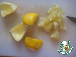 лимон нарежем на 4 части, отделим корочки от мякоти;