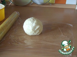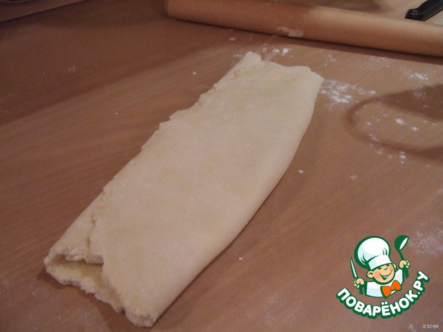 Тесто раскатать толщиной в палец, сложить втрое, примять, накрыть плёнкой и ещё на 30 мин. в холодильник