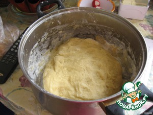 Влить в желтки опару и всыпать муку. Стакана 4-5, тесто должно быть мягким и не липким.