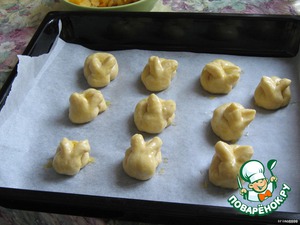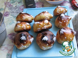 У меня вышло 4 кулича и я решила сделать вот такие булочки-зайчики (идейку взяла с этого сайта, спасибо автору))