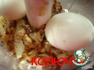 В блендере измельчила яйца вареные, картофель, сыр, лук