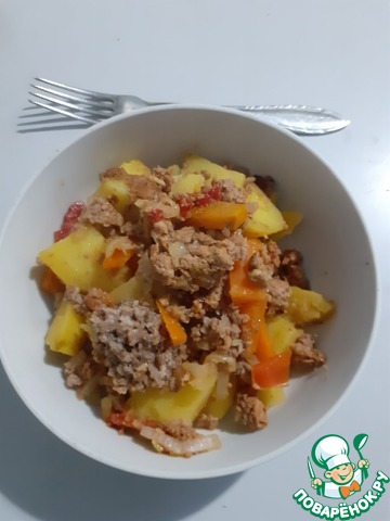Спасибо за рецепт! Ароматное, сочное и нехлопотное блюдо. В фарш добавила мелко нарезанный лук и измельченный чеснок и приправила его солью и перцем. В рецепте об этом ни слова, наверно, и так должно быть всем понятно. Но не хочется домысливать за автора. И часть фарша я перемешала с овощами, а оставшийся выложила сверху на овощи.
