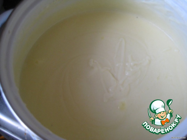Затем добавляем сметану, сахар, ванилин и сливочное масло.. перемешиваем