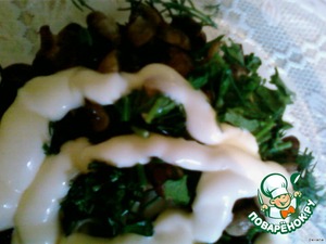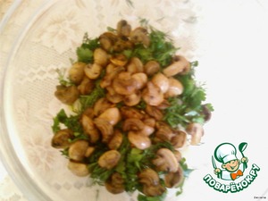 В принципе, этот салатик можно постоянно совершенствовать: добавить к жаренным грибам чеснок, разнообразить зелень и т.д. Будете экспериментировать-поделитесь результатами. Ок? Приятного аппетита!