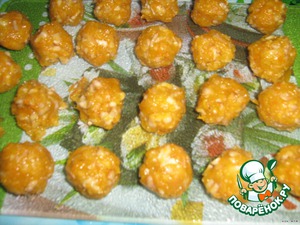 Курагу пропускаем через мясорубку и добавляем нарезанные орехи .И делаем шарики (желток для яиц)
