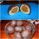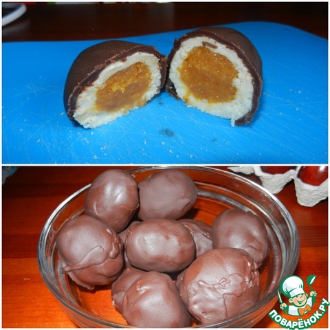 Наши желточки заворачиваем в творожно кокосовую массу и придаём овальную форму .Кладём в морозилку .