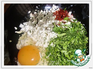 Начинка: сыр натереть на крупной терке, положить яйцо