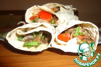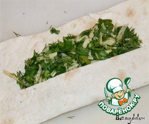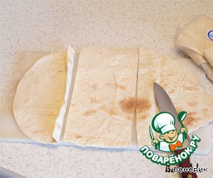 Лаваш разрезать на 3 части.