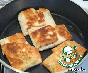 На сковородке разогреть немного масла, положить лаваш швом вниз, обжарить с двух сторон, и приятного аппетита!!!