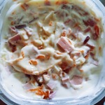 Вообще салат потребовал муж попробовав его в кафе, а мне нравиться если сыр копченый и без мяса.