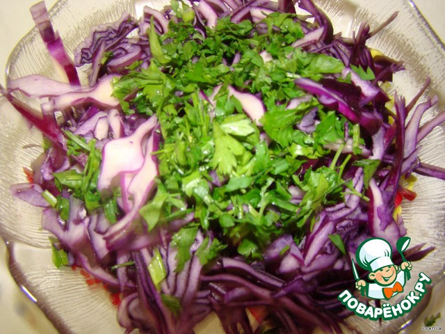 Натуль,замечательный салат!!!Делала на днях салат просто из красной капусты и лука с подобной заправкой-вкусно,обязательно попробую твой вариант!