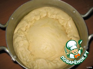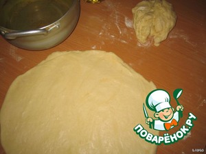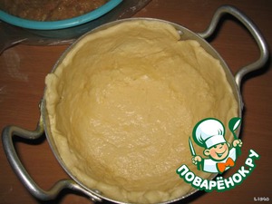 Оставшееся тесто раскатать в небольшой круглый пласт - это будет "крышка" пирога.