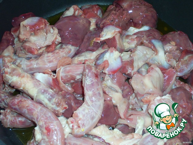 Рецепт «Тушеные куриные горлышки, пупки и печень»: