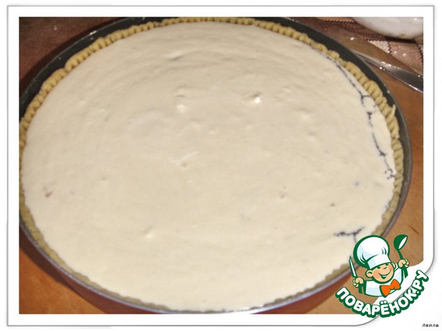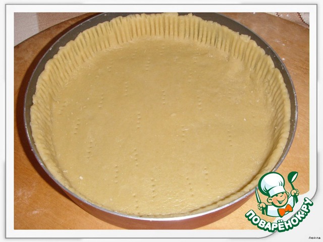 Тесто раскатать и выложить в форму, сделать бортик высотой 4-5 см и в нескольких местах наколоть дно вилкой -