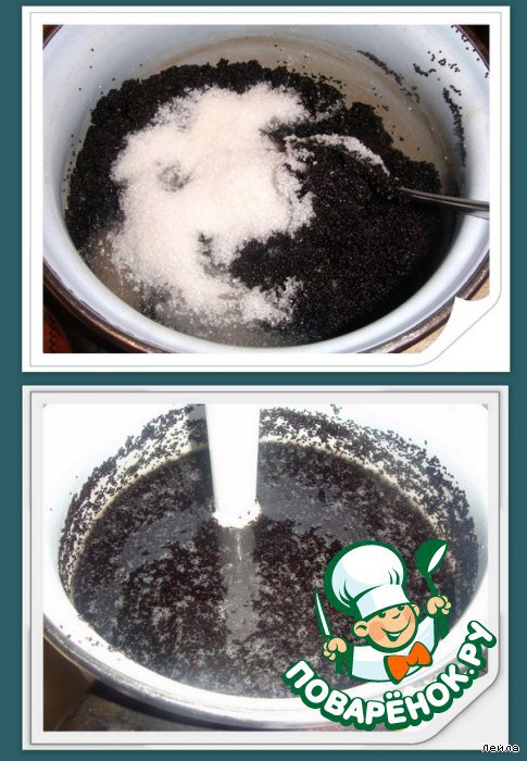 Пропустить мак на мясорубке (делала блендером) вместе с сахаром. Сахар по вкусу (около 2 стаканов, достаточно 1 стакан) -