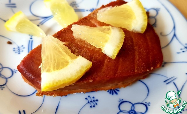 Выложить рыбу на высокую решетку, под неe поставить микроволновую посуду для стекающего сока и готовить на 100 % уровне мощности 3 мин.
