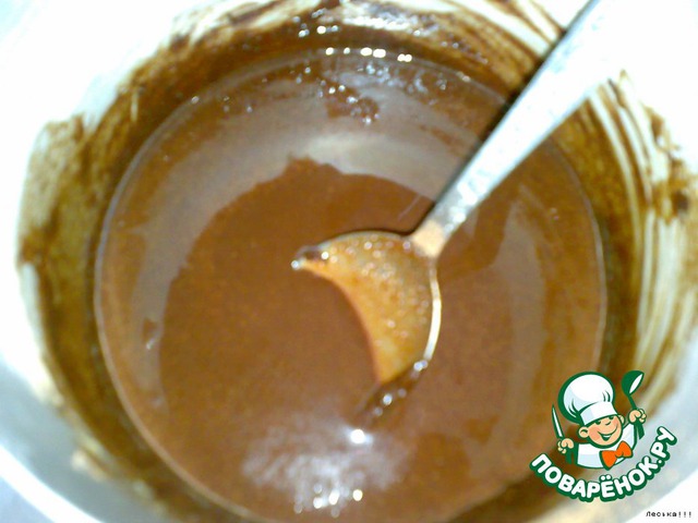 Делаeм глазурь. Перемешиваем на плите молоко, сахар, какао, ставим на медленный огонь. Варим, помешивая, пока не загустеет. Снимаем с огня, добавляем сливочное масло.