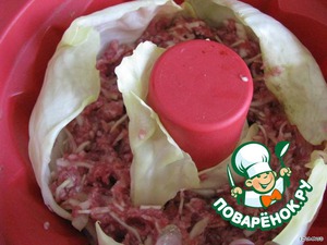 форму "КАЛАЧ" смазать маслом и застелить капустными листьями