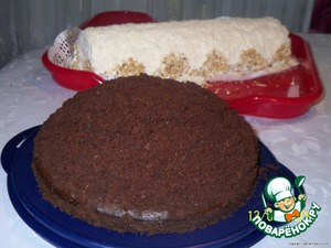 Оставшуюся серединку от торта размять в крошку и ею посыпать сверху торт.