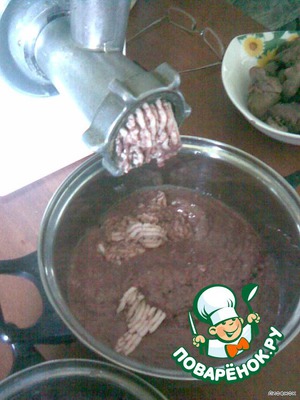 Процесс начинки кишек не фотографировала, руки были заняты, а помочь не было кому. Но можно посмотреть здесь http://www.povarenok .ru/recipes/show/239 92/